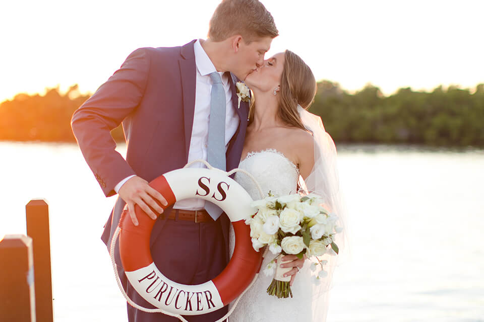 Crisp white and gold foil for Brooke and Scott's classic Bonita Springs, FL destination beach wedding at Hyatt Coconut Point. An elegant monogram and classic gold script was carried through their day of decor, including ceremony programs, event signs, place cards, reception menus, and a custom printed welcome tote bag.